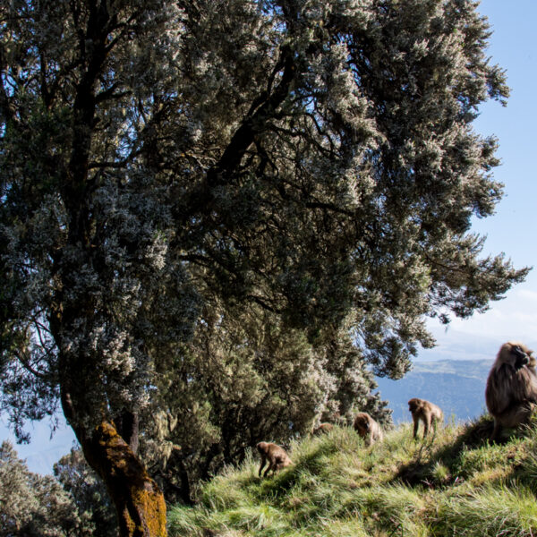 Hike around Chenek a Strategically placed benches allow for the opportunity to take in the expansive views back toward Emmet gogo, especially beautiful in both the dawn and dusk light. A large troop of Gelada Baboons are common here and Walia Ibex is also often seen on the rocky escarpment edges. Then back to Gonder, Ethiopian medieval capital.